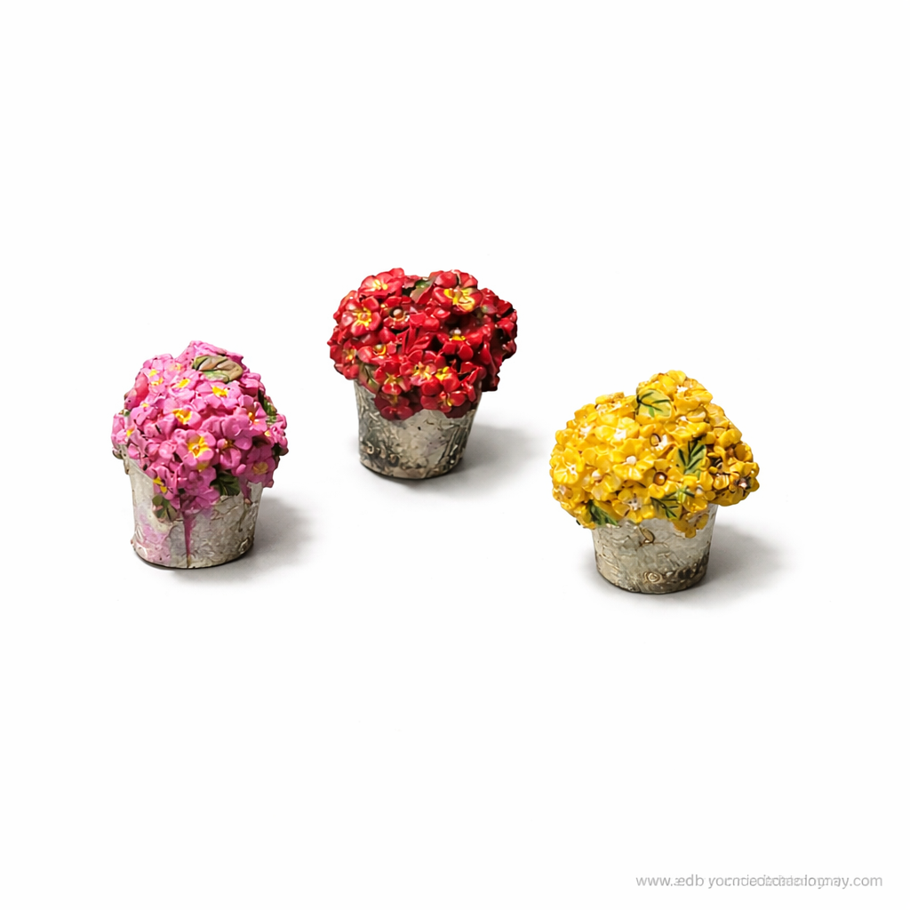 Mini Potted Flowers – Set of 3 (Pink, Red & Yellow)