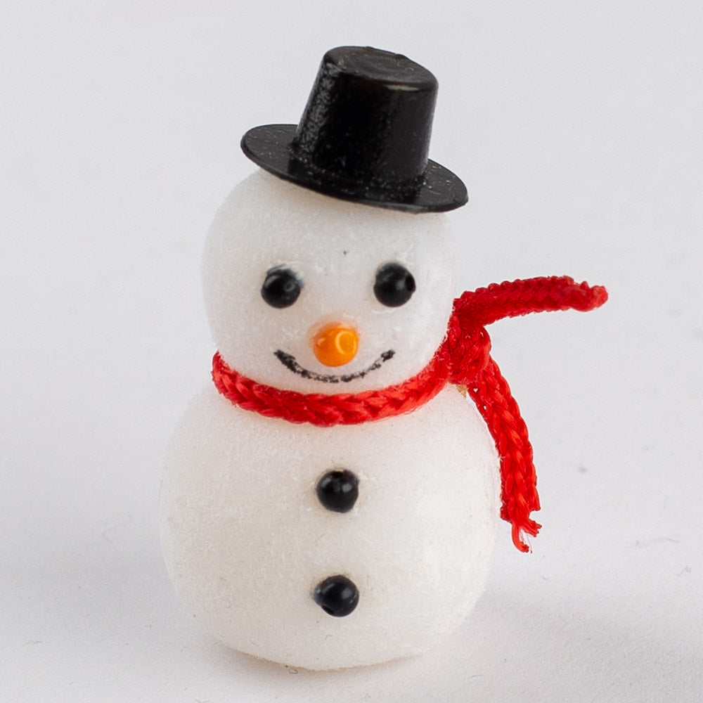 These Miniature Flocked Snowmen will bring whimsy to your Christmas holiday decorating! Let these darling frosty snowmen serve as miniature characters in dollhouses, and holiday dioramas. Add them to trees, wreaths, garlands, and other wintry displays. Let them be precious accents as table scatters, placeholders, or party favors. Made of plastic and synthetic fibers. Some hats may need to be reglued. Size: 1-1/2" x 7/8" Dia.